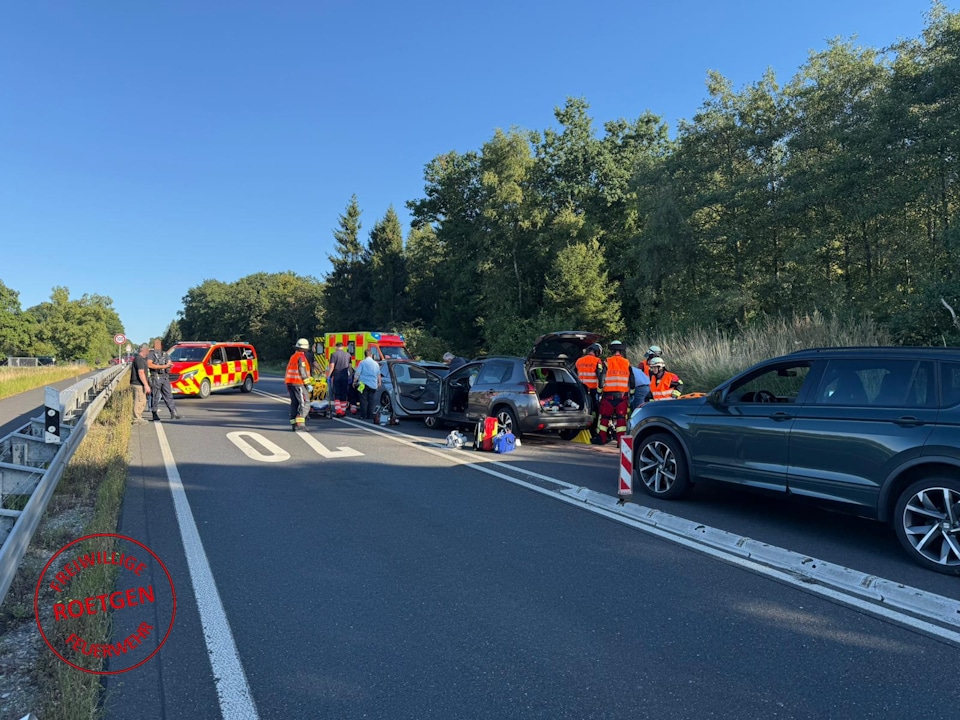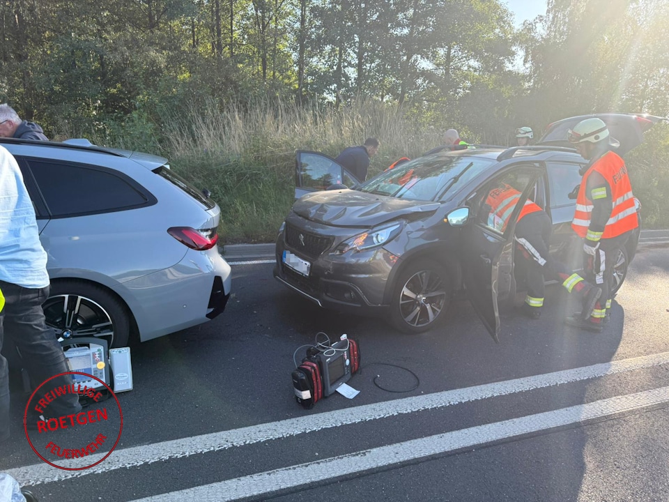 Bei Eintreffen der Kräfte der Feuerwehr war der Rettungsdienst bereits vor Ort und behandelte verletzte Fahrzeuginsassen.